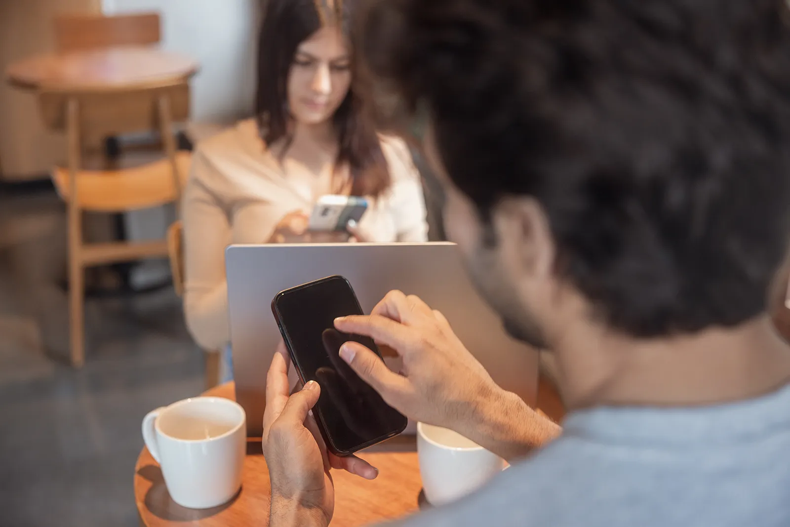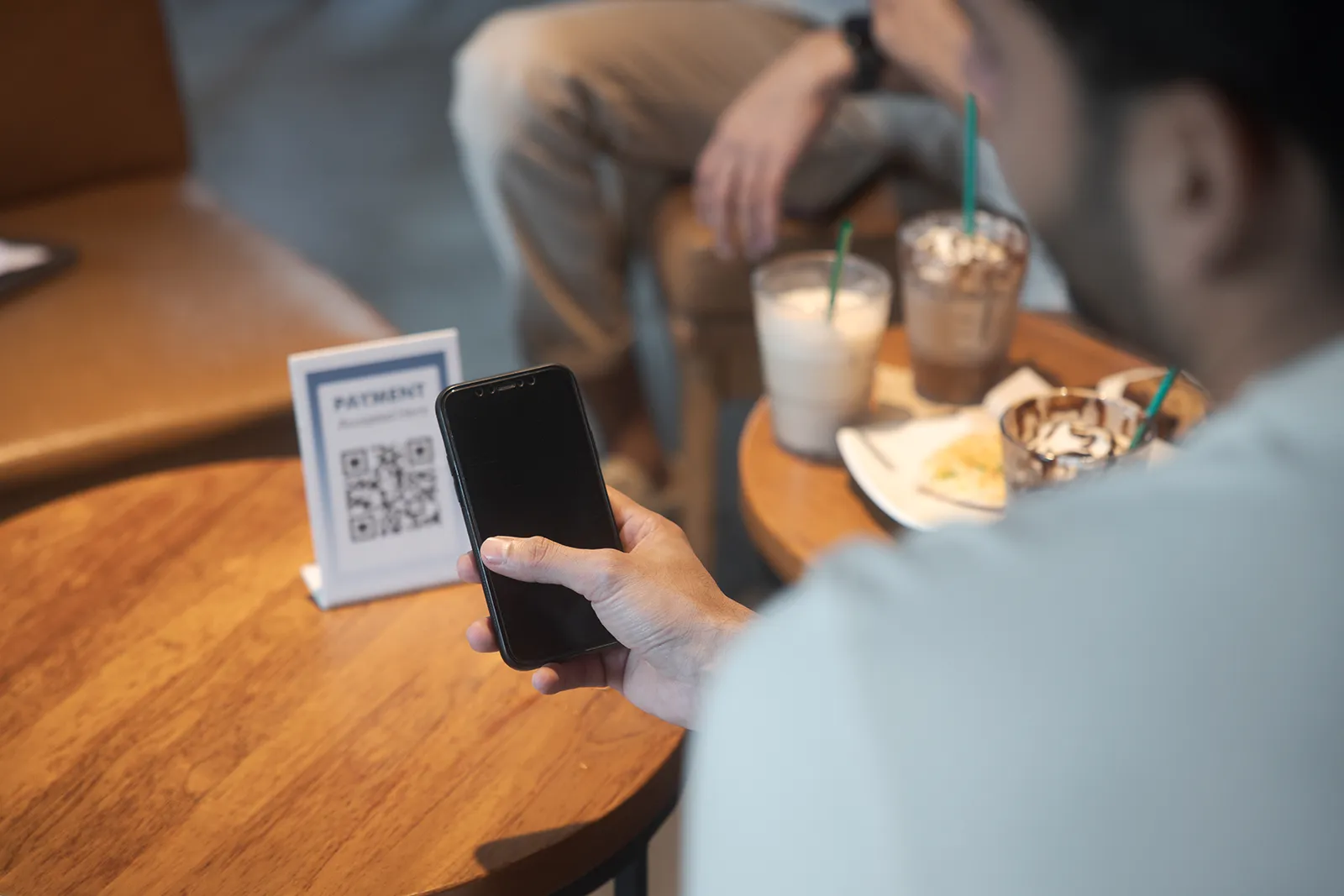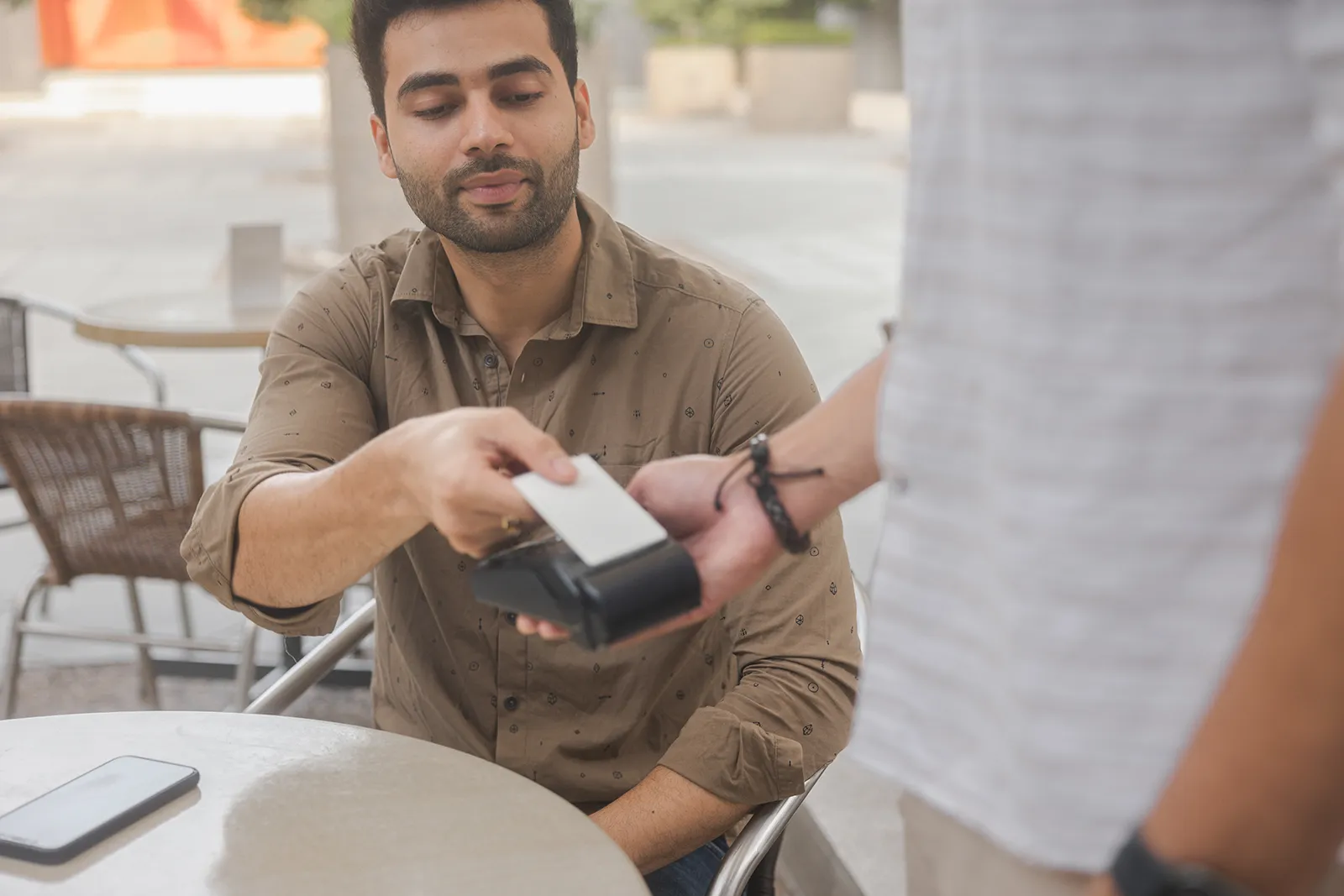 We shot across outdoor cafe terraces and indoor coffee shop settings to get both the ambient outdoor light and the warm interior tones. Scenes were built around real interactions — someone handing over a phone to pay, a group ordering from a tablet, a solo shot checking a receipt. Nothing was over-staged; the tech had to feel like a natural part of the moment.