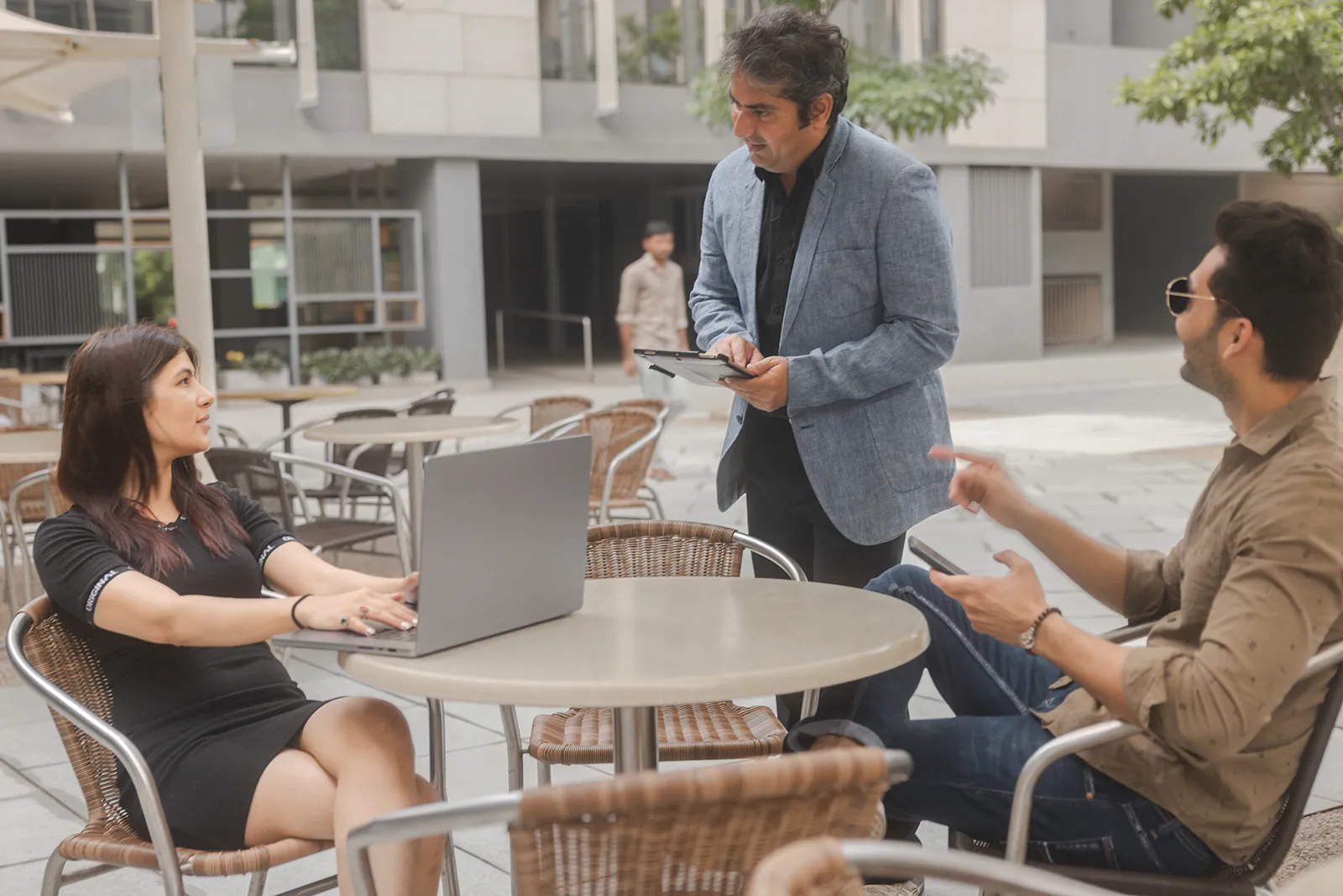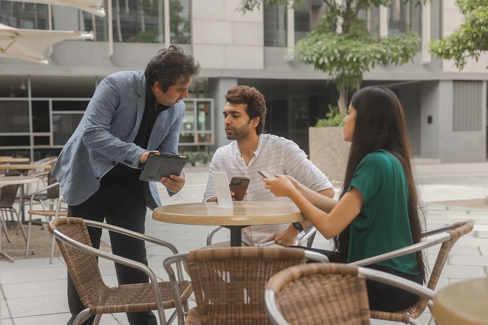 AWS needed images showing how technology fits into everyday business transactions in India. The brief covered ordering food from an iPad menu, contactless and digital payments, using devices at cafe tables and outdoor settings. Similar models to the previous shoot — young Indian professionals, ages 22–35, mix of male and female. Natural and candid, no stiff corporate poses.