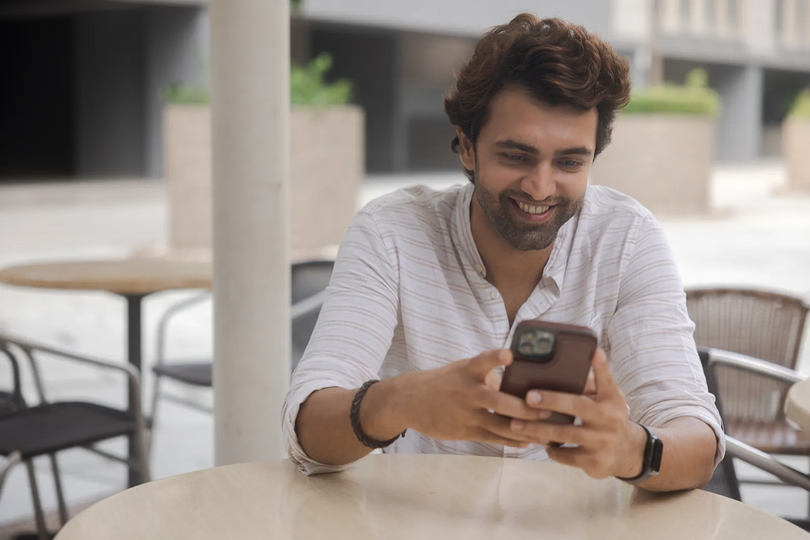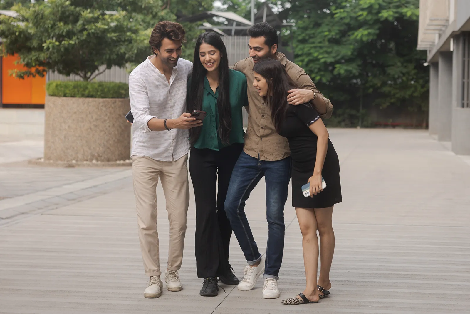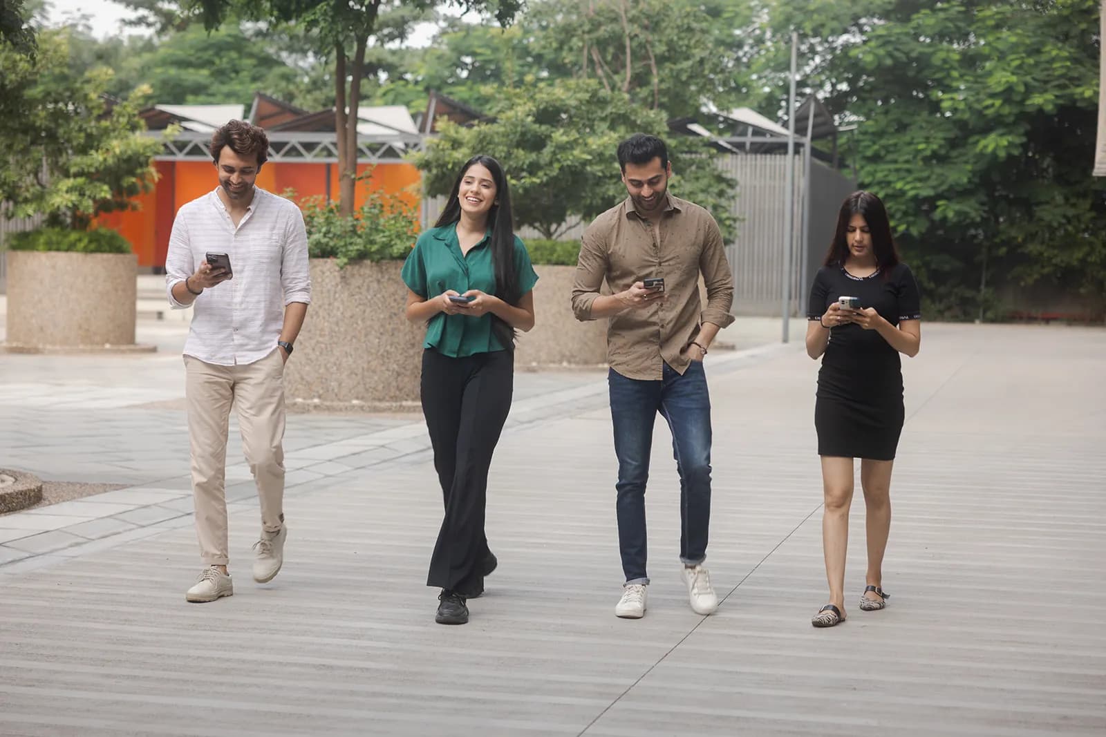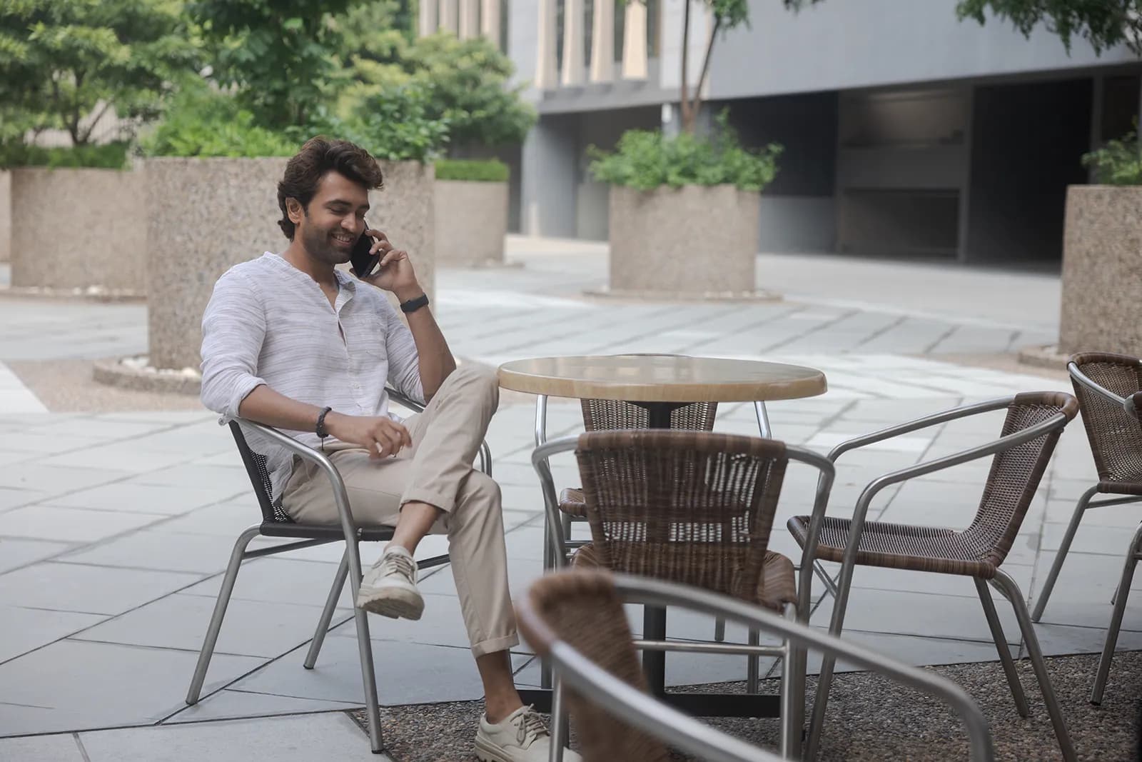 We shot across outdoor urban settings — open plazas, cafe terraces, and walkways — using natural light throughout. Solo shots captured focused, productive moments; group shots showed easy collaboration and conversation. The wide outdoor backgrounds gave the campaign a modern, aspirational feel without looking corporate.