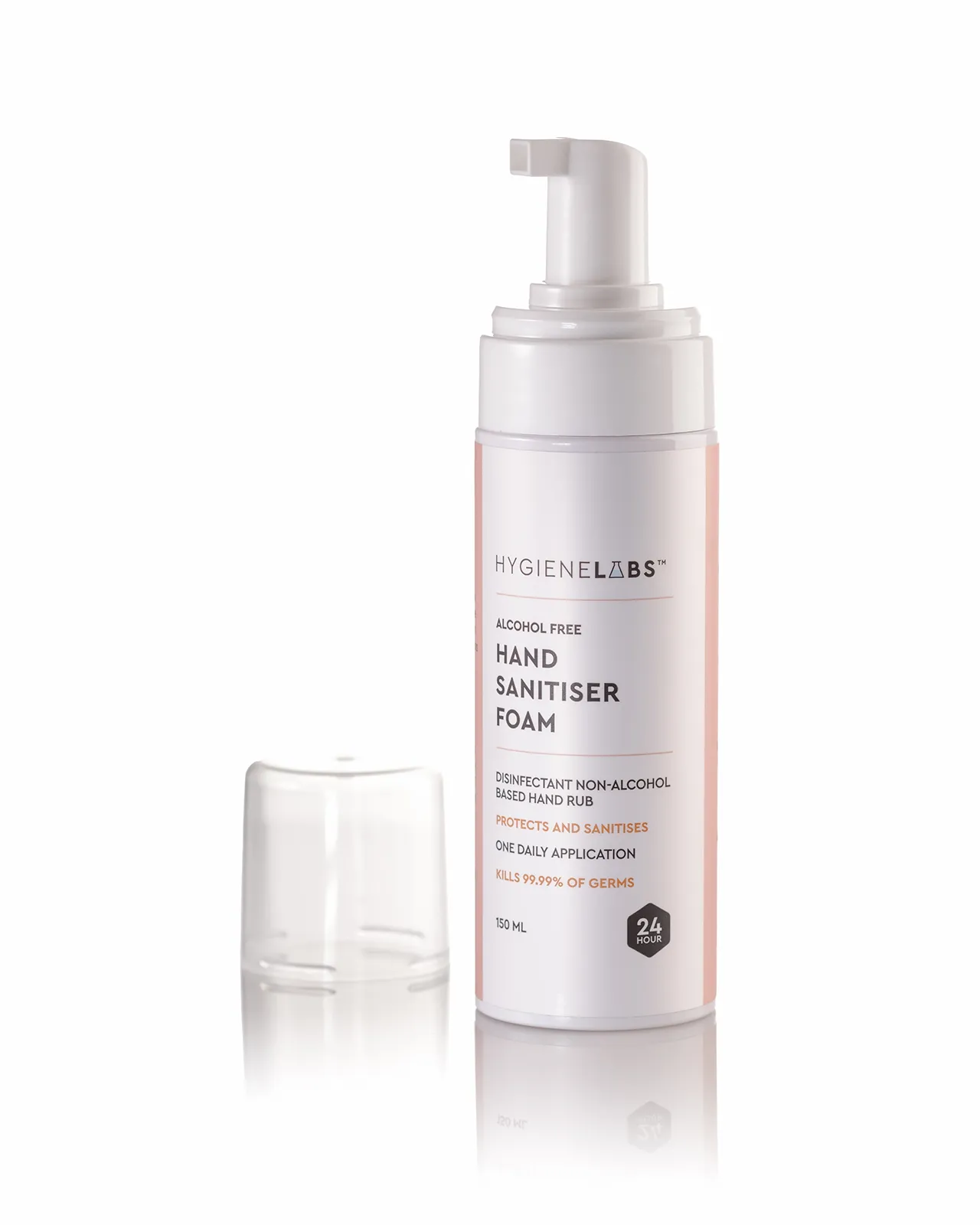 Hygiene Labs launched in 2021 during peak Covid, with a range of antimicrobial products — hand foams, wipes, and aerosol sprays for rooms and cars. They were selling online and in pharmacies across India. They needed two things: strong hero images to build the brand, and clean white background shots for product listings on e-commerce platforms.
