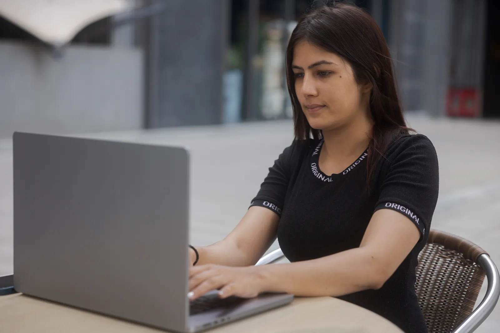 We shot across outdoor urban settings — open plazas, cafe terraces, and walkways — using natural light throughout. Solo shots captured focused, productive moments; group shots showed easy collaboration and conversation. The wide outdoor backgrounds gave the campaign a modern, aspirational feel without looking corporate.