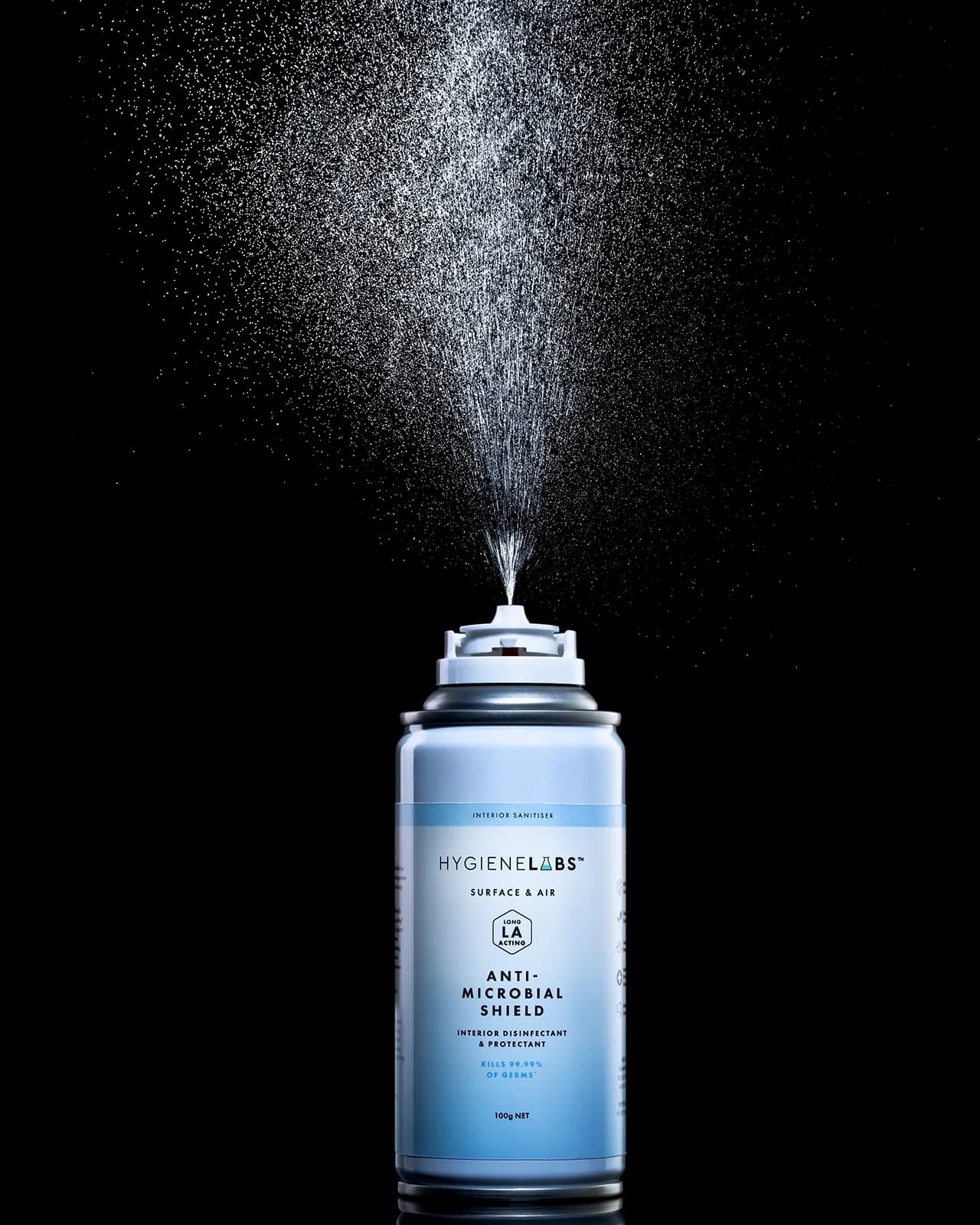 Hygiene Labs launched in 2021 during peak Covid, with a range of antimicrobial products — hand foams, wipes, and aerosol sprays for rooms and cars. They were selling online and in pharmacies across India. They needed two things: strong hero images to build the brand, and clean white background shots for product listings on e-commerce platforms.