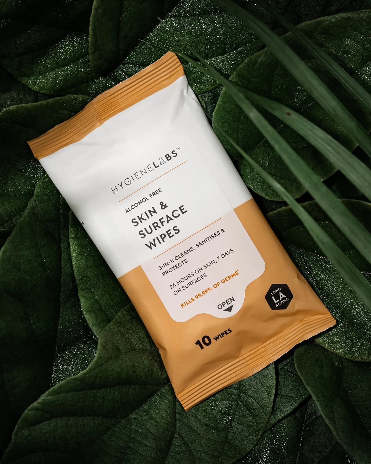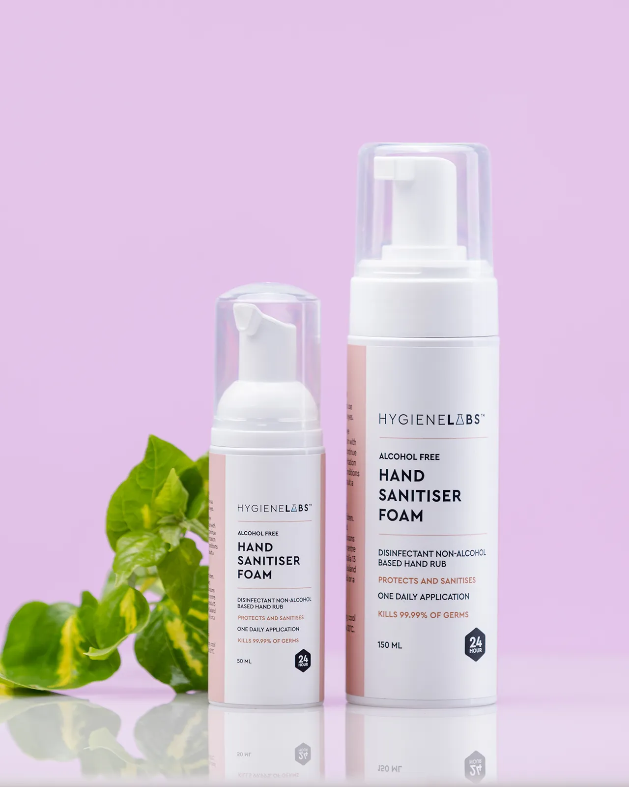 Hygiene Labs came back for a second shoot as the brand grew. This time they needed two distinct looks: dark, moody nature-backdrop shots of the products on tropical leaves for campaign hero images, and bright, colourful pastel studio setups — pink, lavender, and yellow — for social media posts and catalog listings.